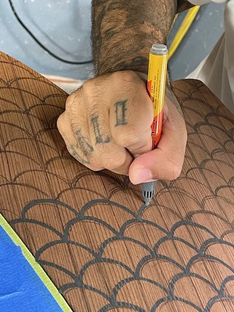 The inlay is adorned with a traditional Japanese scale pattern, drawn from irezumi tattoo art, symbolizing fluidity, strength, and respect for the sea.