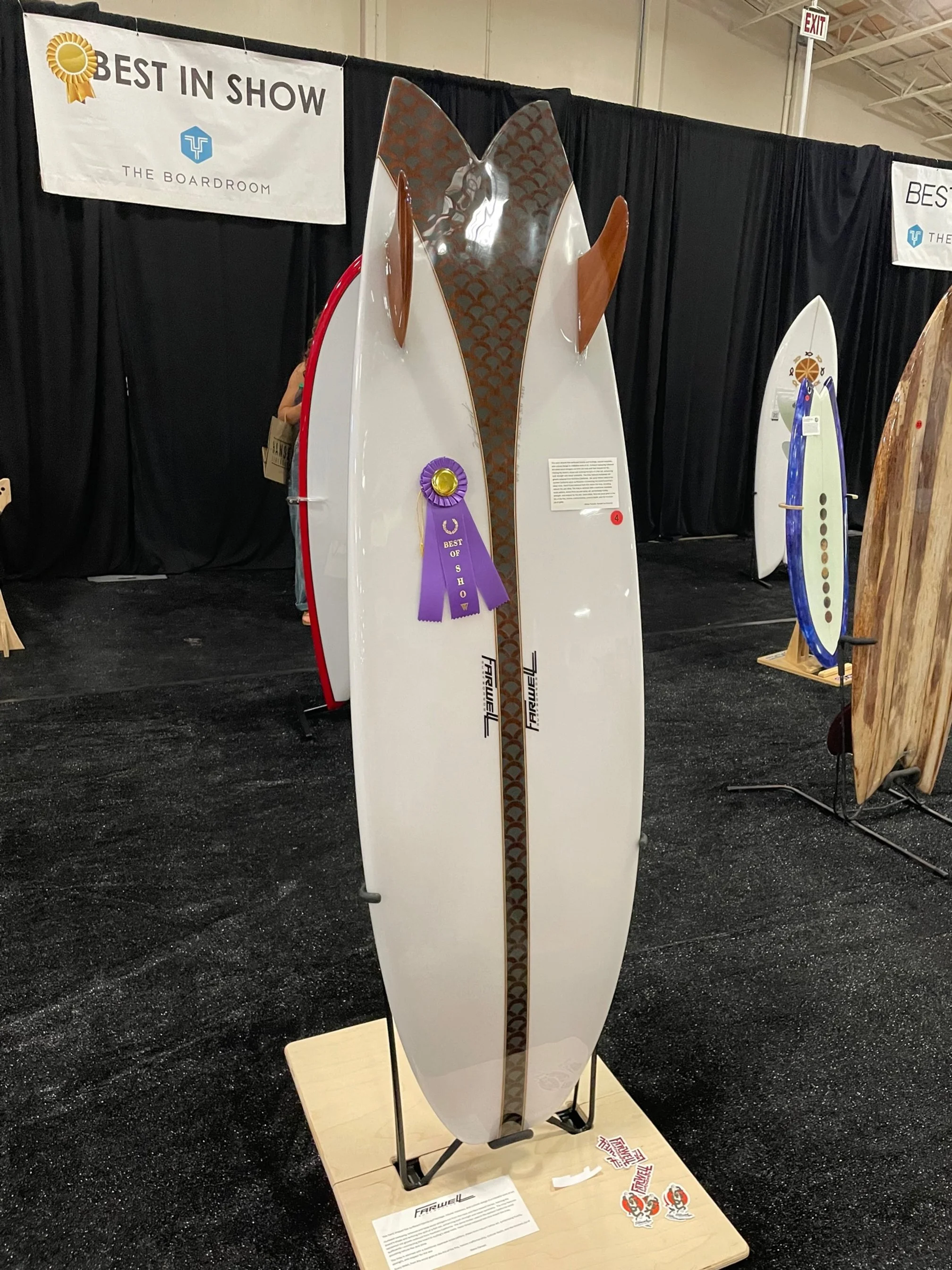This hand shaped fish surfboard blends surf heritage, natural materials, and cultural design in a rideable work of art.